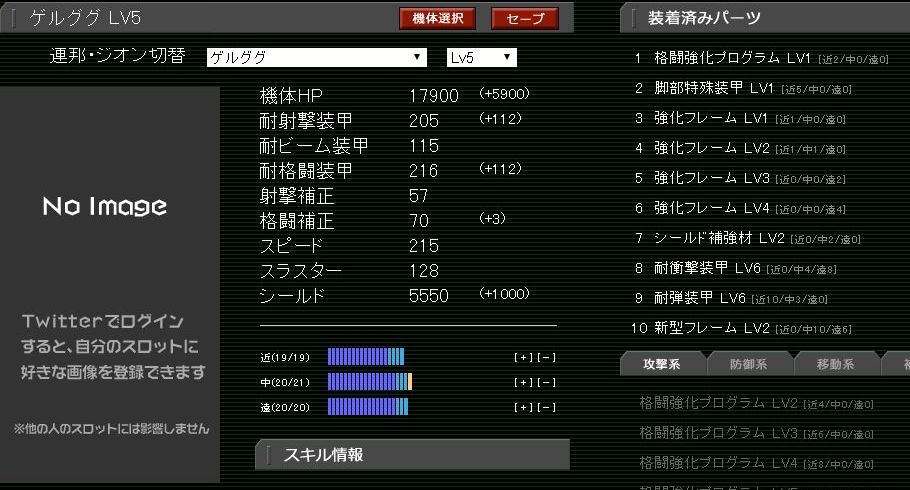 2/13のアップデートが反映されていない為数値が若干異なります。HP18650・格闘補正127・スラスター162、であとは同じ。